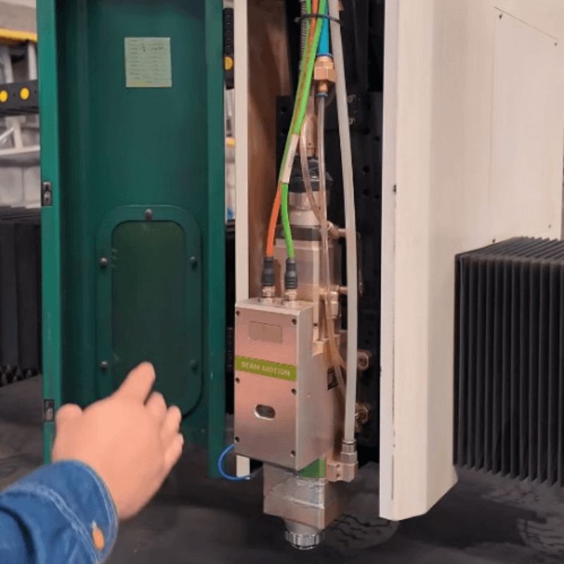 El haz viaja por la fibra óptica hasta el cabezal de corte, donde se enfoca sobre el material. Gracias a la eliminación de espejos y ópticas intermedias, se reduce la pérdida de energía y se incrementa la eficiencia del sistema.